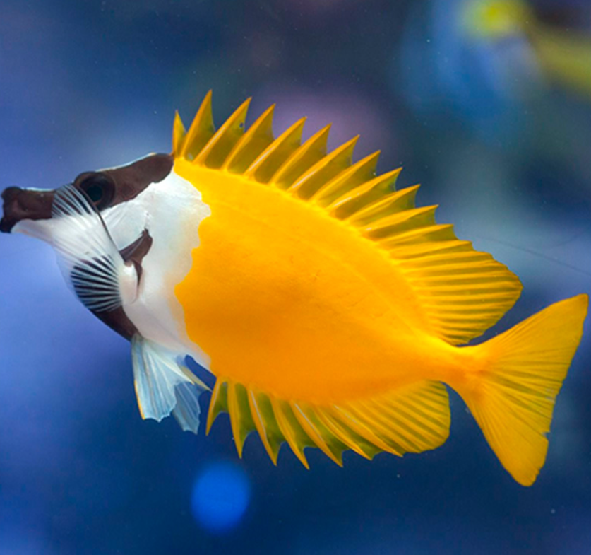 O Fox Face (Siganus vulpinus) é um peixe incrível para aquários marinhos, conhecido por sua coloração vibrante e sua eficiência no controle de algas! 🟡⚫ Com sua aparência exótica e comportamento pacífico, ele é ideal para aquários de recife e comunitários.